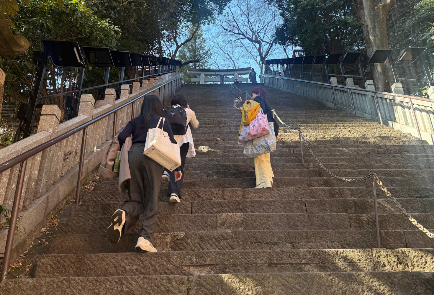 この日は、上着が必要ないほど暖かく、階段を登り切ったときには、汗がにじむほど。急な階段は試練のように厳しかったですが、頂上へたどり着いた時は達成感でいっぱいでした。