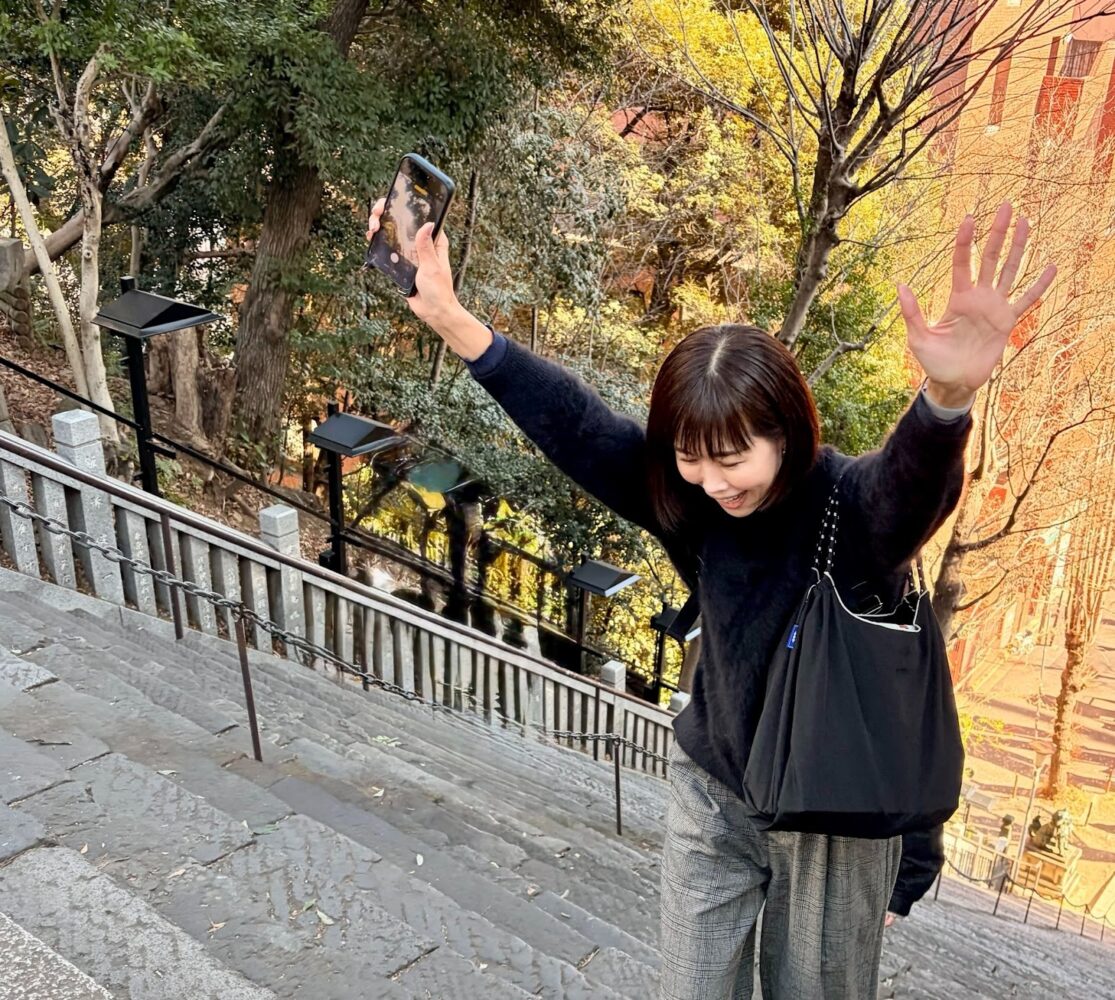 「23区内最高峰の神社」という名に違わず、参拝前には《出世の石段》と呼ばれる “男坂” の急な階段が私たちの目の前に立ちはだかりました。
