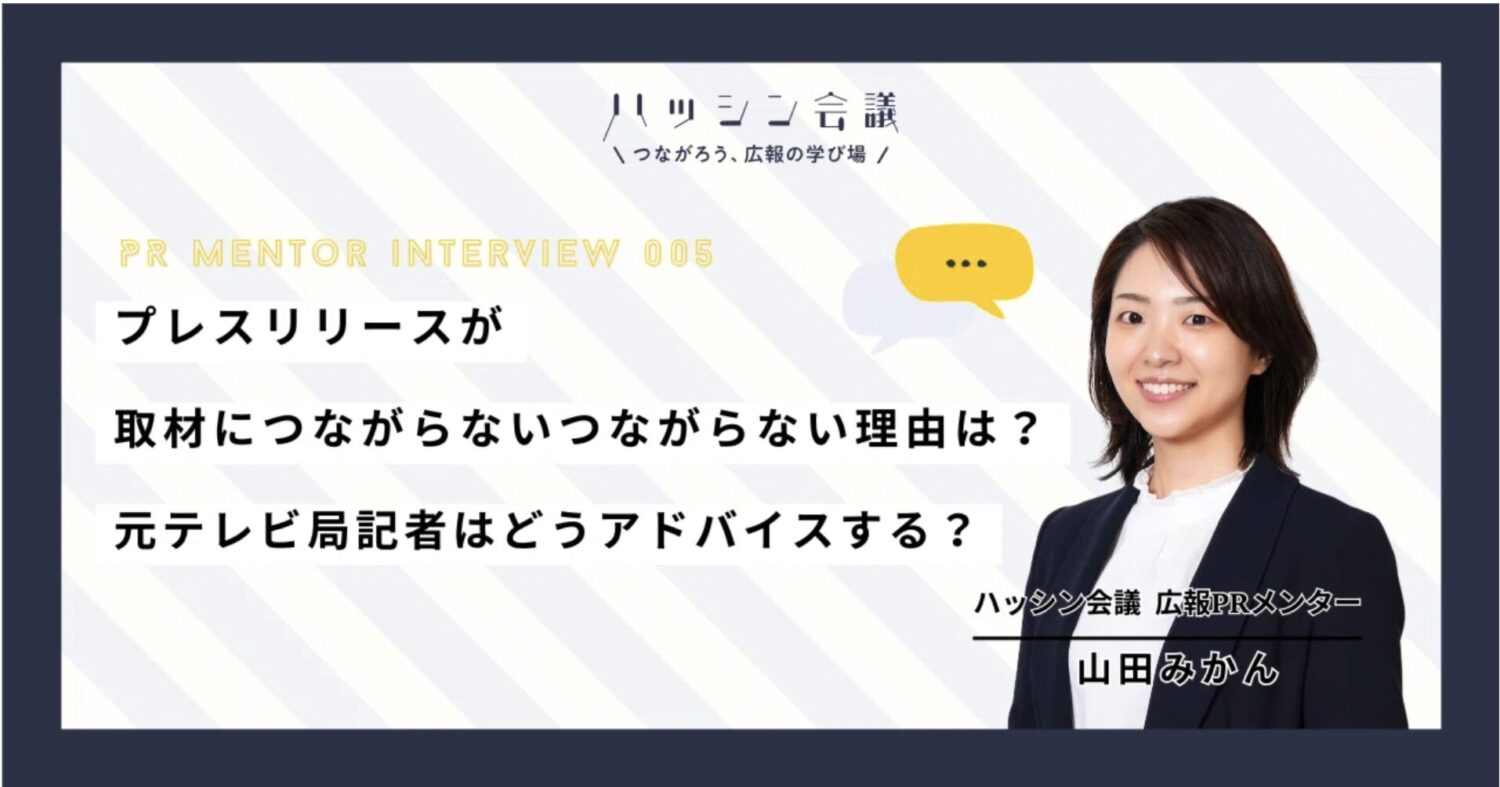 ハッシン会議のPRコミュニティでは、さまざまな広報担当者の悩みに寄り添う【個別PRコンサル】を提供しています。「リリースを出しても反応がない」「今のやり方で合っているのか不安」……そんな悩みに、元テレビ局記者で報道の現場を知り尽くしたPRメンター・山田みかんさんがお答えします。