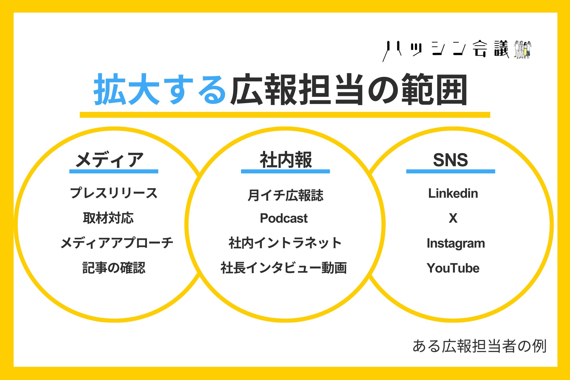 企業内で広報を担う人数は増えなくとも広報の業務は以前に比べ拡大し続けています。
