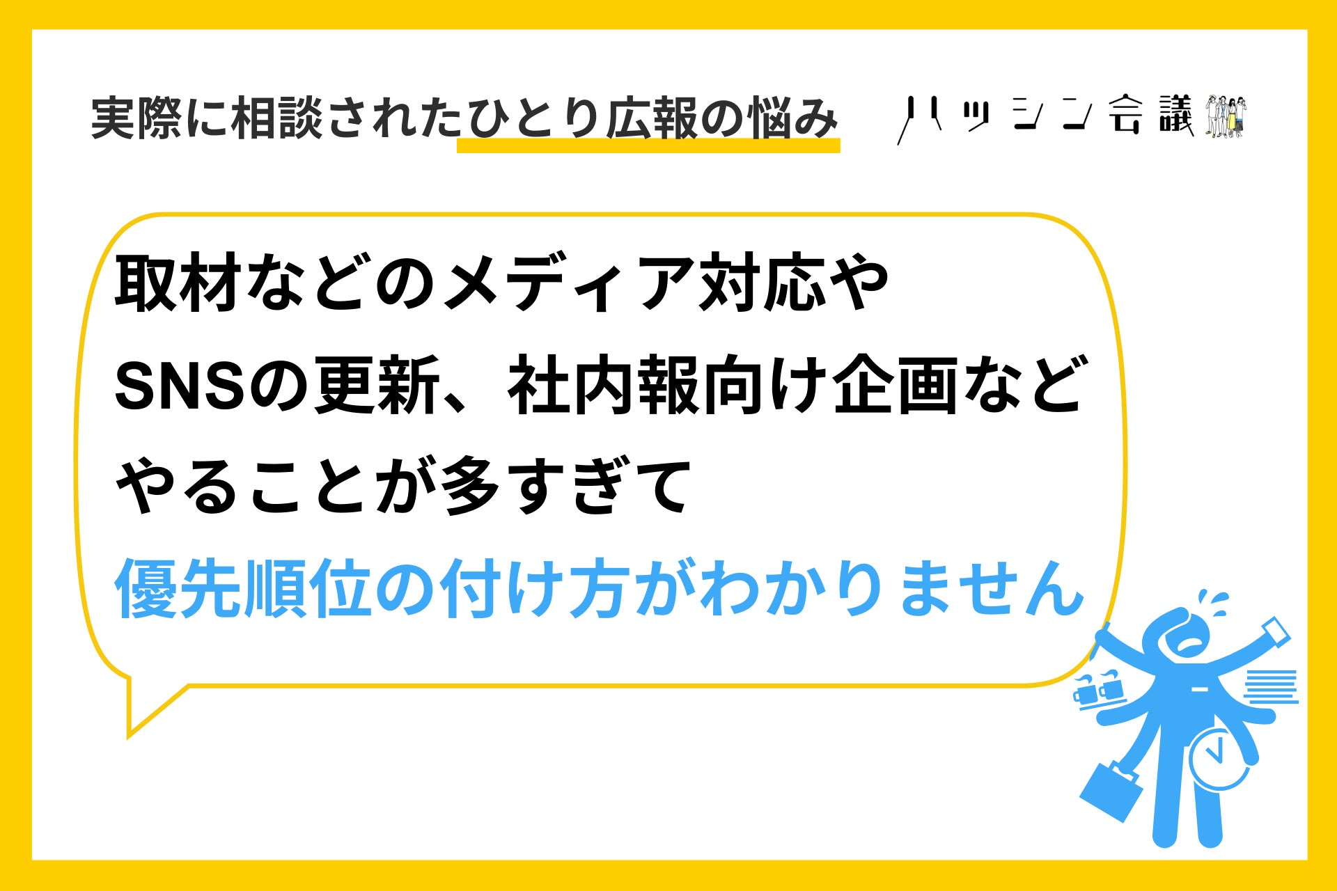 ハッシン会議の個別PRコンサルティングではこうした「ひとり広報」の悩みを多く聞いてきました。
