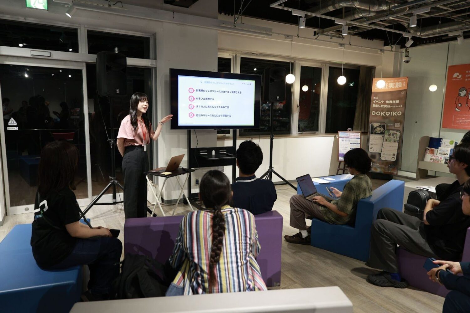 会場のつくばスタートアップパーク TSUKUBA CONNÉCT(Community Campus Tsukuba)は、スタートアップ実務に関する深い知識と経験を持つ専門家から、仲間と共に学ぶ場です。今回は起業やスタートアップに興味のある方、ビジネスアイデアを持っている方、広報 / PRに興味のある方・学生の方 ・創業初期の経営者の方にご参加いただき、プレスリリースについてレクチャーしました。